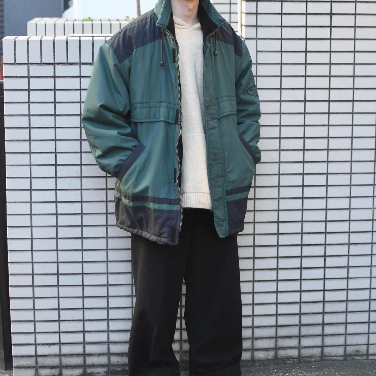 古着 ミドル丈 フリースライニング ナイロンジャケット ジャケット グリーン