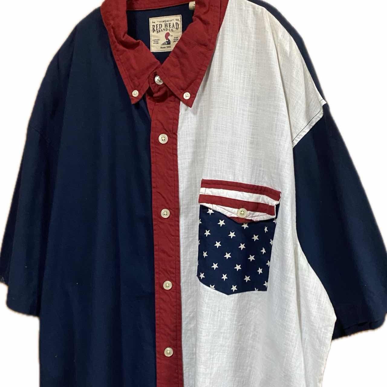 90s limited【超限定】RED HEAD フルボディ星条旗 シャツ F おそらくこれを見て、古着に詳しい方は喉から手が出るほど欲しかったアイテムだと思います。 90年後期オーバーサイズブームと限定物さらに切り替えパターンが大人気だった時代の超限定品のレッドヘッドのシャツです。見極めポイントは簡単です。沢もそうなのですが、シルエットとですね。ボタンダウンと少し70年を意識したかなと思うのに、めちゃくちゃビックサイズの所と好切り替えの感じが確実に90年代ヴィンテージです。 さらに特質ポイントとしてはレッドヘッドは、星条旗モチーフは、いっぱい出したんですが、切り替えが半端だったんです。 ところが、2000年に近づくにつれて、古着ブームとドメスティックブランドブームが融合して、半端なものはブランドの質が下がる下がると言うことで、かなり手間をかけた。超限定品がこのシャツですね。 重ね着したときの破壊力が半端ないですし、1枚でも半端ないです。さらに季節関係なく年中活躍します。暑い時は1枚でスタメン 寒い時はコーディネートご覧くださいね。販売中のリバーシブルコート、ただそれだけです。それでこんなにクールに決まる。さらに岡山企画のボトムと合わせてパーフェクトコーディネートだと思います。 さらに、ビックサイズの魅力、着画1 インナー、ニットセーターです、これ、Overサイズだから、出来る重ね着が、楽しくなる商品ですね!! しかも、こんなにマルチに活躍するのに、このお買い求めやすい値段だったら、ぜひあなたのワードローブに加えていただきたいです 確実に、あなたの、お洒落を、アップデートするお供になります。 保証します!! ▷color◁ 写真通り、星条旗アート ※ブラウザで異なる場合ありますがかなり実物には、近づけてます、 ▷size◁ 平置き片面採寸【㎝表記】 表記size XL表記だが、アメリカ発祥ブランドFは、あります、 着丈/85 身幅/65 肩幅/60DS 袖丈 /40↓ DSは袖はハンガー採寸 ※多少の誤差は理解下さい 170/Mジャスト体型の私が着て、✔️参考に ジャスト オーバーサイズ ビックサイズ✔︎ 【素材】 コットン 【状態】 新品同様極上美品 検品、洗濯、検品で、3回チェックして発送しますので、ご安心して、お買い求め下さい!!