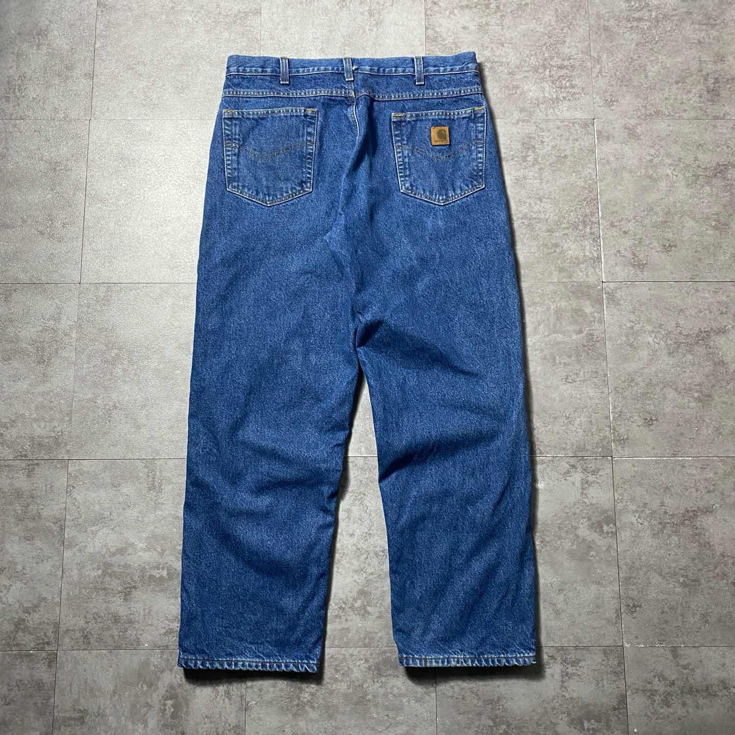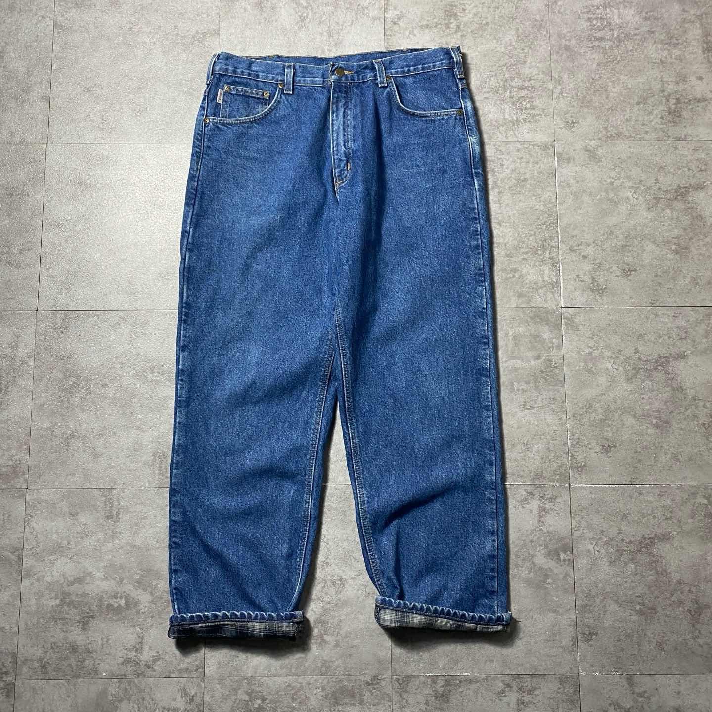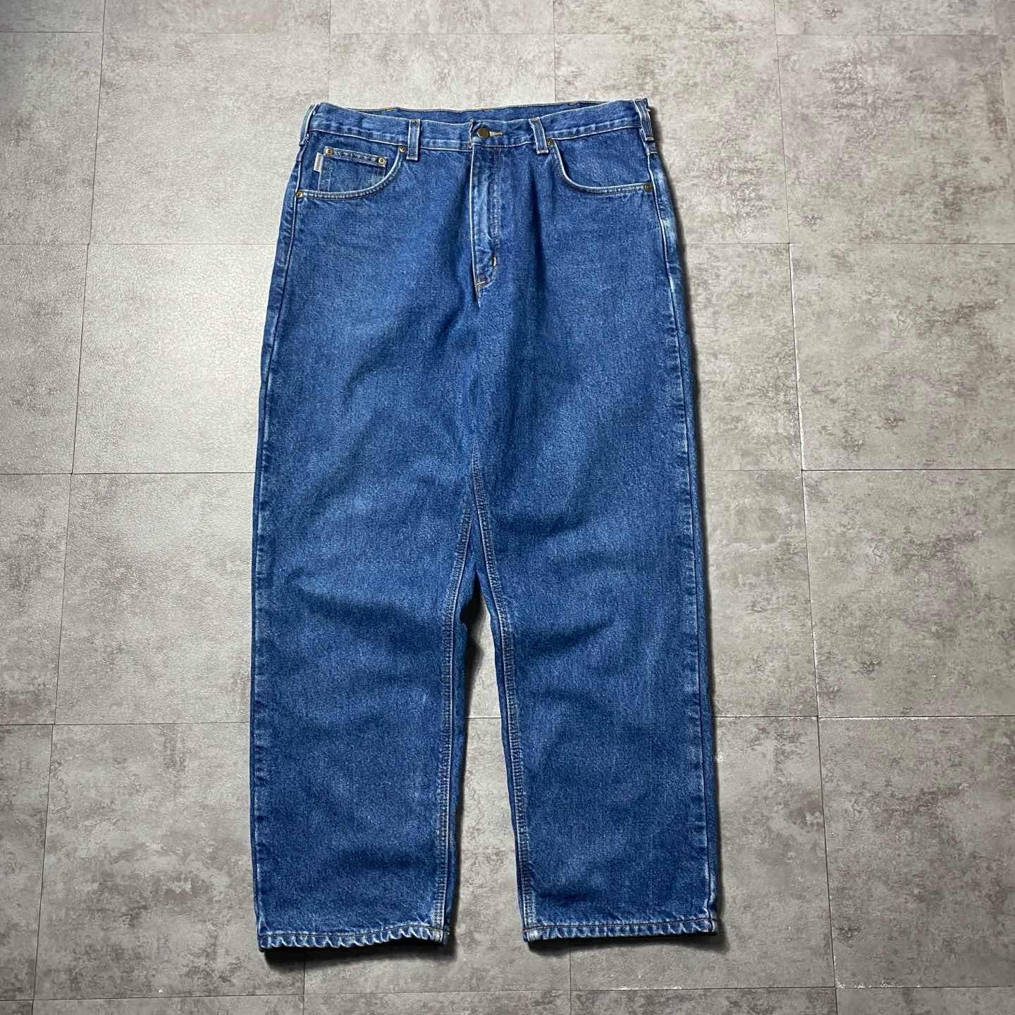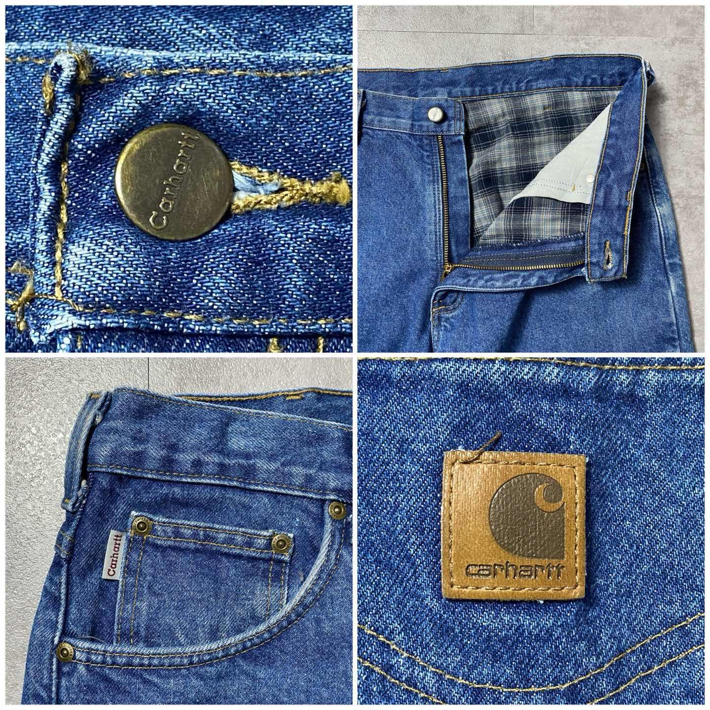 carhartt カーハート ジッパーフライ 裏地ブランケット付き レザーパッチ 濃紺デニムパンツ