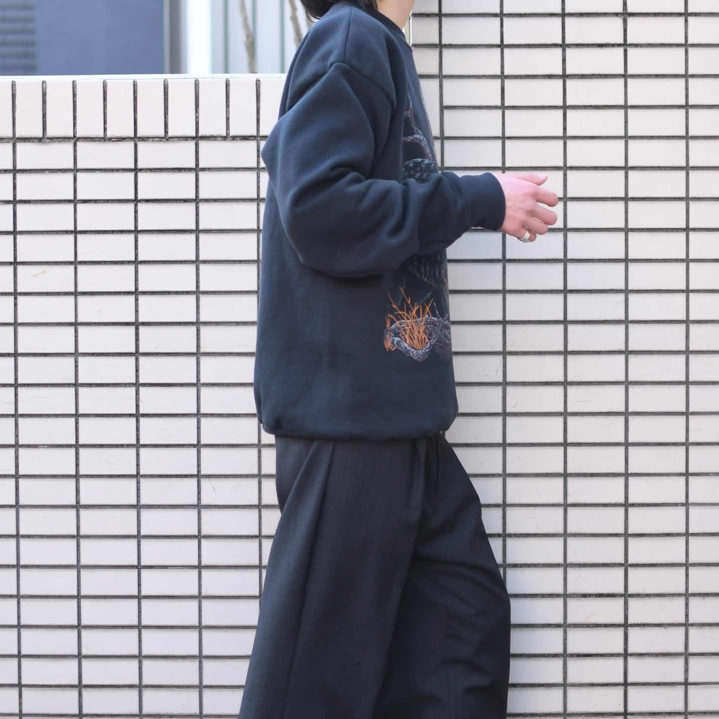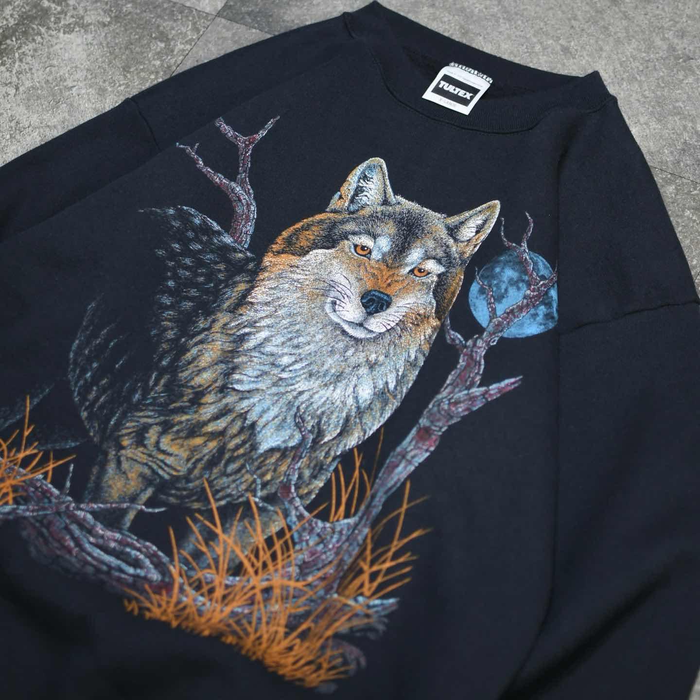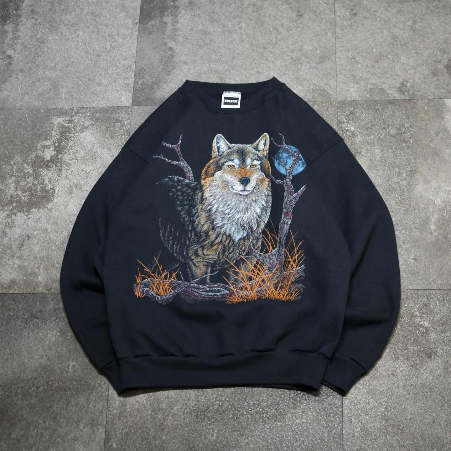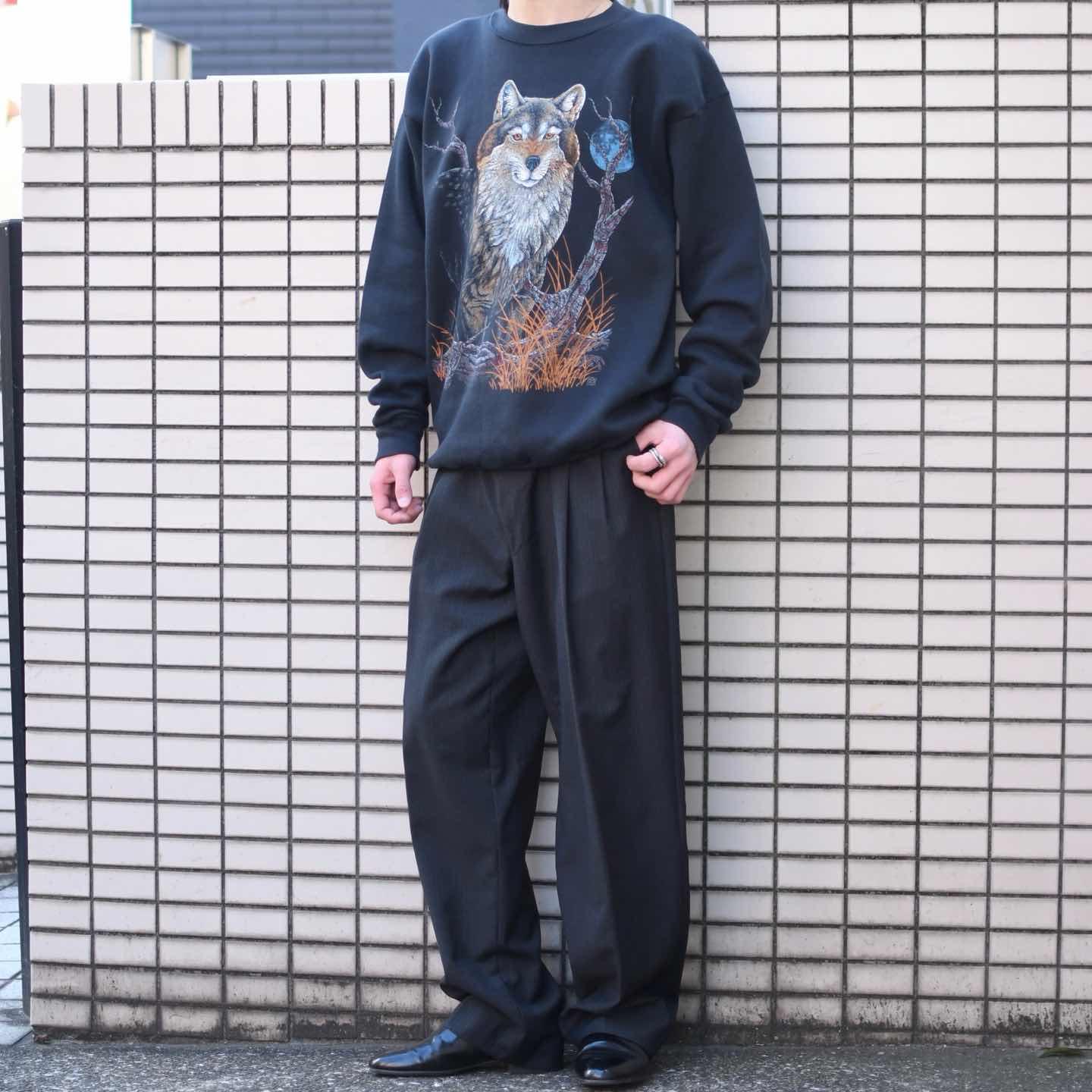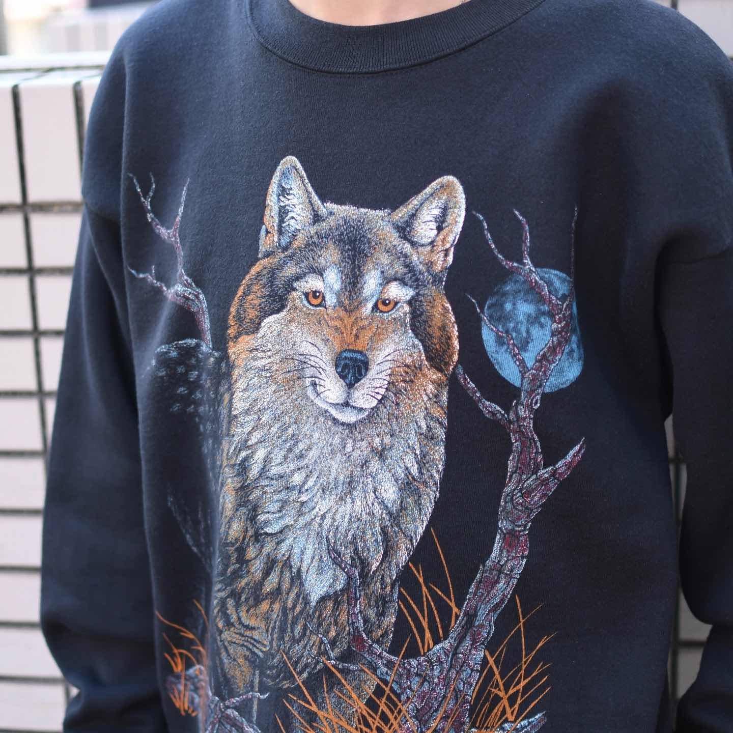 古着 アニマルスウェット プリントスウェット オオカミ トレーナー ブラック