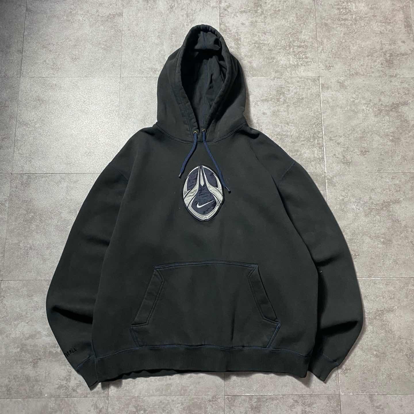 【XL】00s NIKE スウォッシュ 刺繍×ワッペン パーカー フーディ
