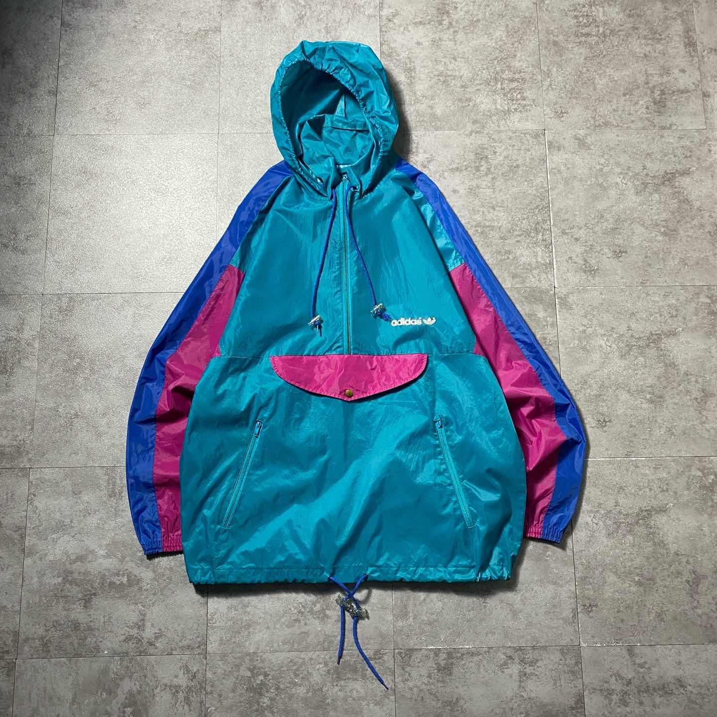 90s adidas トレフォイル ハーフジップ マルチカラーナイロンアノラック