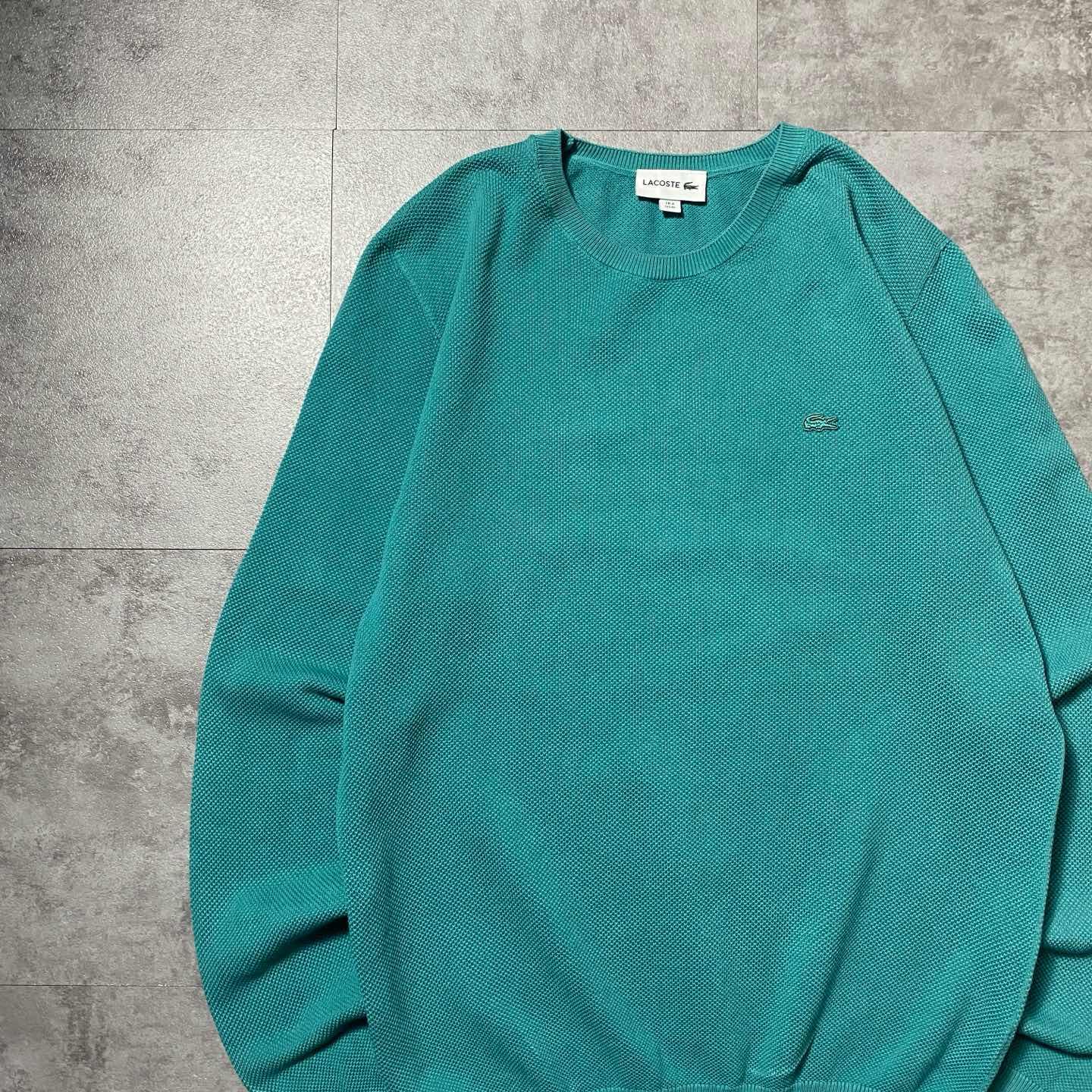 ラコステ ワンポイント ターコイズブルー ワッフル生地 スウェット トレーナー