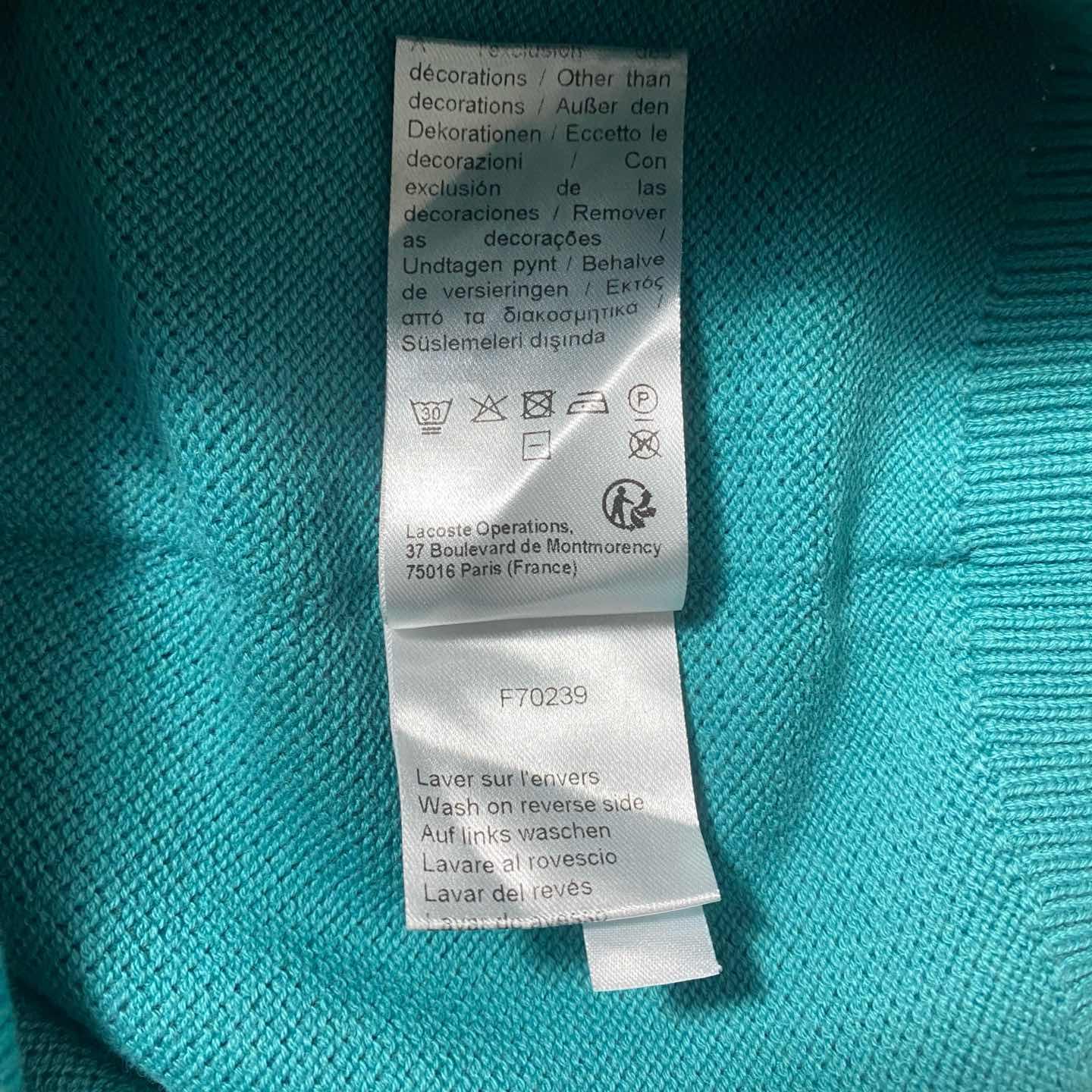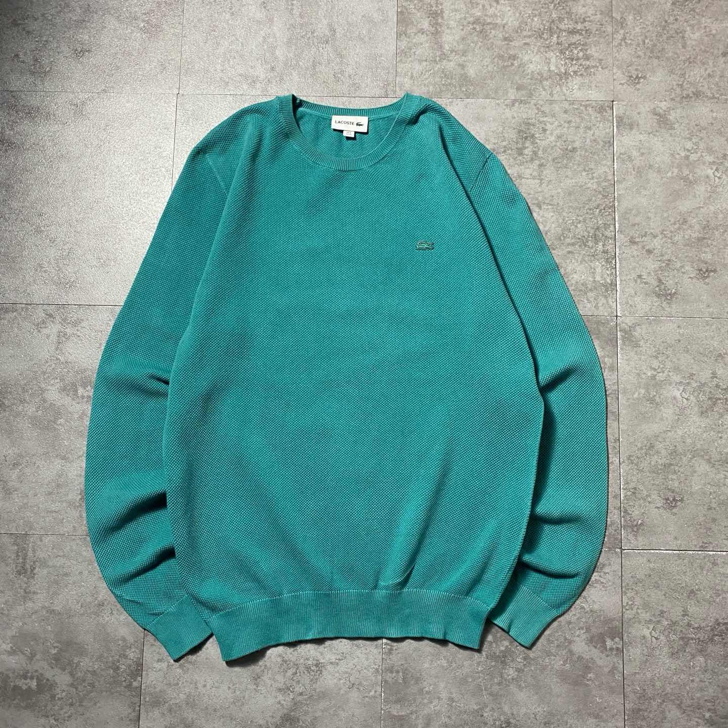 ラコステ ワンポイント ターコイズブルー ワッフル生地 スウェット トレーナー