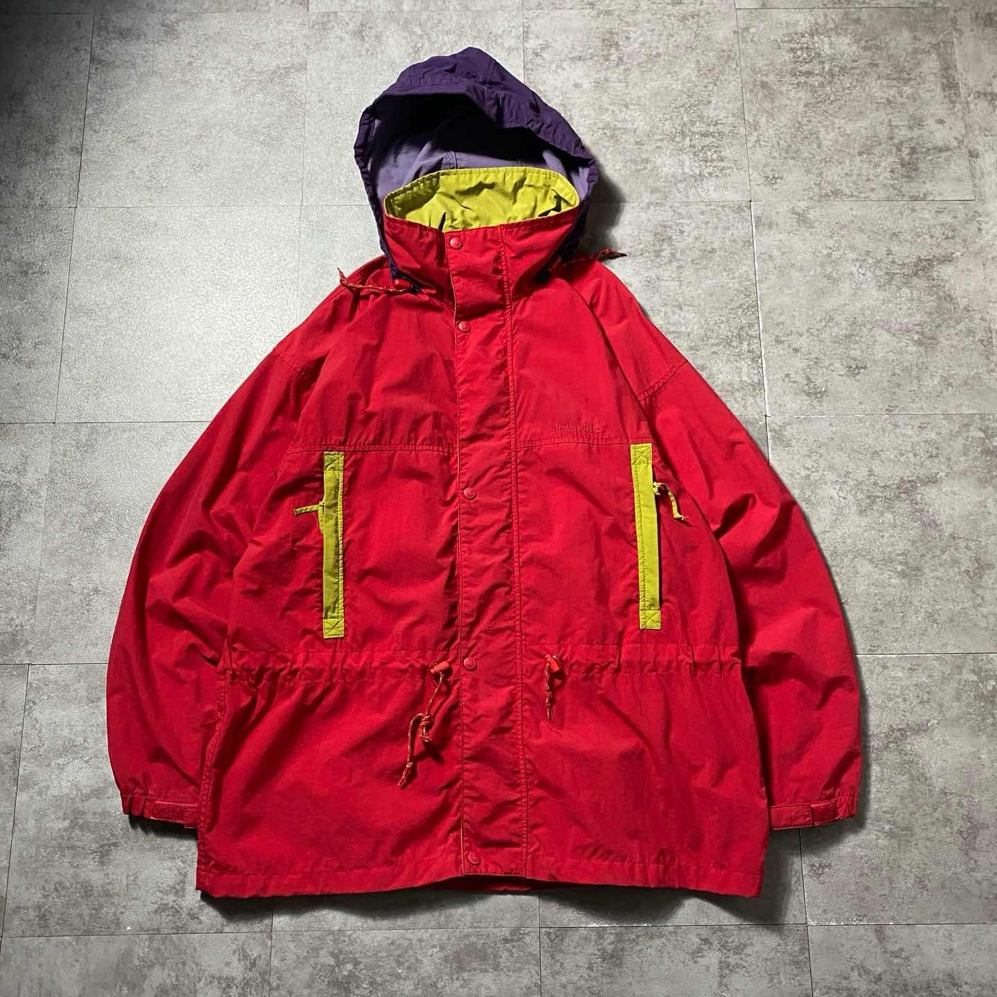 【XL】90s ティンバーランド 刺繍ロゴ 好配色 ナイロンマウンテンジャケット